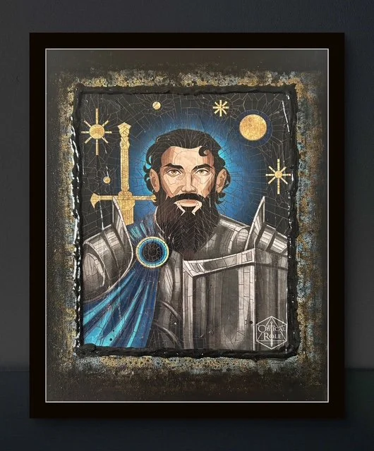 Zerxus Ilerez “First Knight Of Avalir” $150 Materials Style 3Acrylic on canvas - mixed media character print